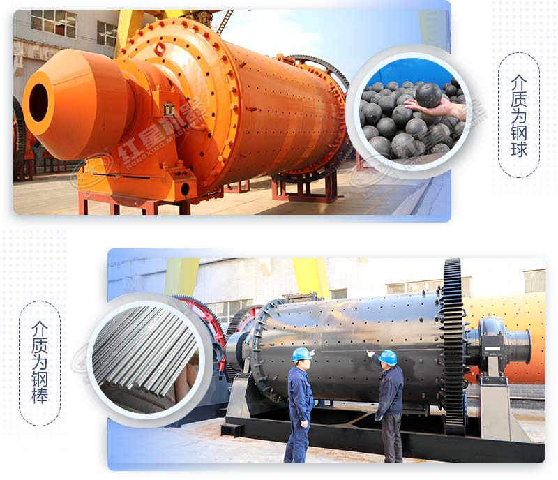 鋼渣球磨機(jī)研磨介質(zhì)為鋼球,鋼渣棒磨機(jī)研磨介質(zhì)為鋼棒,以點(diǎn)接觸改為線接觸,并可根據(jù)鋼渣特性配用合適的研磨鋼棒。該設(shè)備研磨出料粒度更均勻,產(chǎn)量更好。